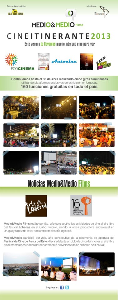 Medio&Medio Films continúa realizando sus 4 giras de cine itinerante y gratuito, totalizando 160 funciones en todo el país, en un ciclo que se extenderá hasta el 31 de Abril.