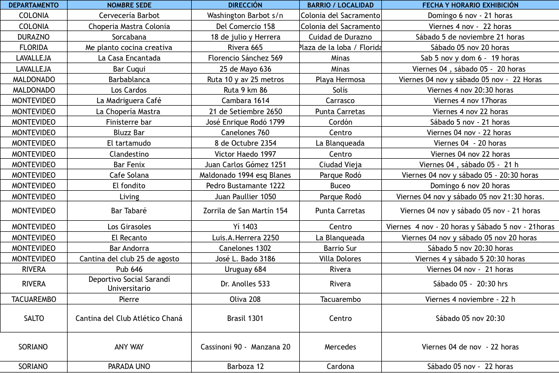 Los días 4, 5 y 6 de noviembre se llevará adelante una nueva edición de Servime un Corto, iniciativa que este año se desarrollará en el marco de las actividades del Día del Cine Nacional. En la presente convocatoria hubo un total de 60 cortometrajes inscriptos: 24 a través de la web de ICAU y 36 por LALA, plataforma online que pone al servicio de su comunidad diversos proyectos relacionados con el mundo audiovisual. Entre los inscriptos se seleccionaron 11 que formarán parte de la muestra que podrá verse en 29 bares y boliches de diferentes departamentos del país.